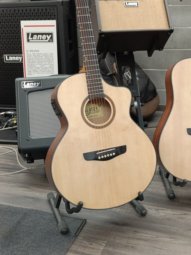 Tutte costruite con tavole in abete, la gamma include due dreadnought, una grand auditorium e una orchestra, elettrificate e non. Ce n’è una per ogni esigenza! ![]()