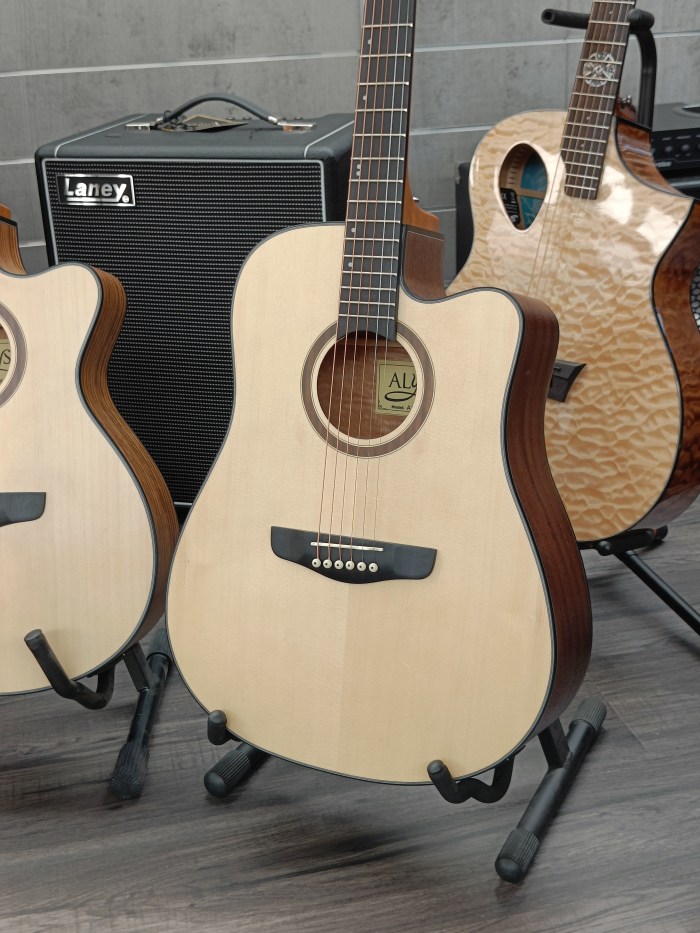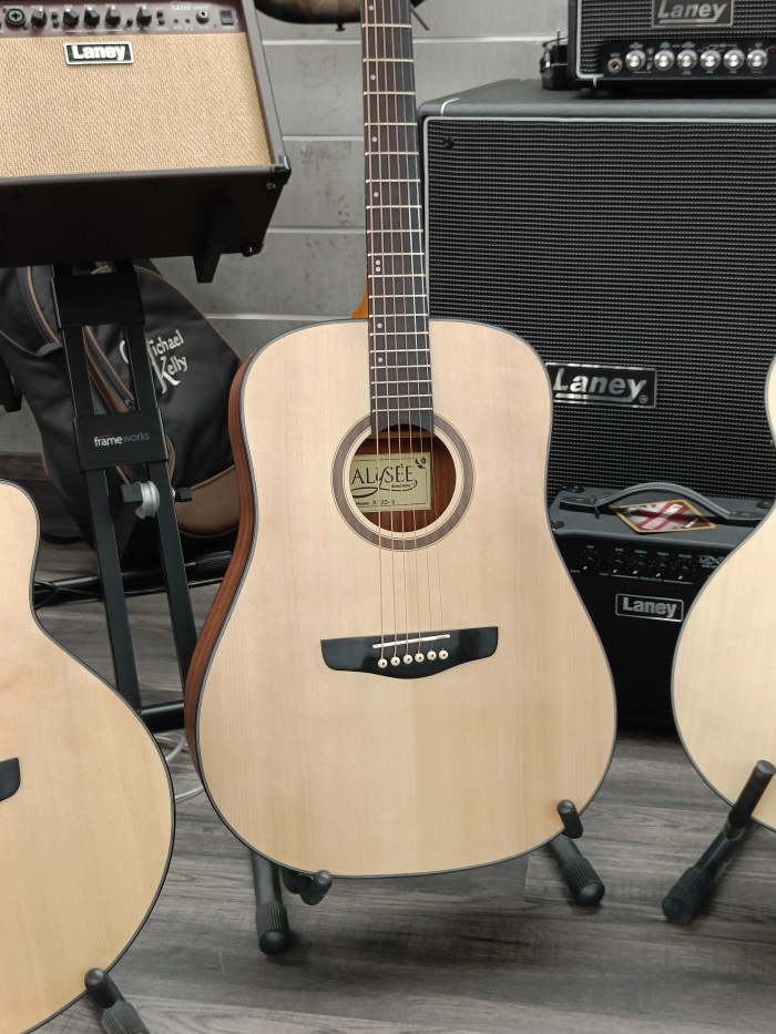 Le chitarre Alysée sono state sviluppate per offrire uno strumento ben costruito ed affidabile a tutti coloro che si affacciano al mondo dell’acustica, oppure per chi necessita di avere una chitarra “da battaglia” ma non vuole rinunciare alla qualità. Tutte costruite con tavole in abete, la gamma di chitarre acustiche Alysée include una dreadnought, una dreadnought cutaway, una grand auditorium e una orchestra, elettrificate e non, tutte con un incredibile rapporto qualità prezzo.